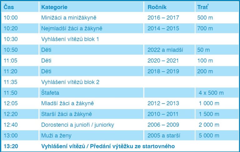 Pro všechny bez rozdílu věku – od nejmenších dětí až po zkušené běžce a seniory. Připraveny jsou různé délky tratí a aktivity pro celou rodinu: